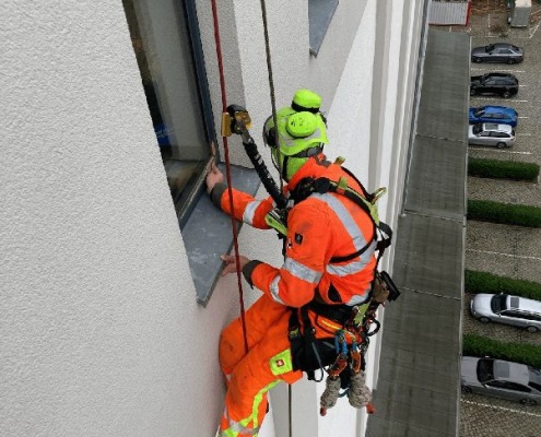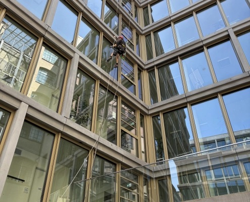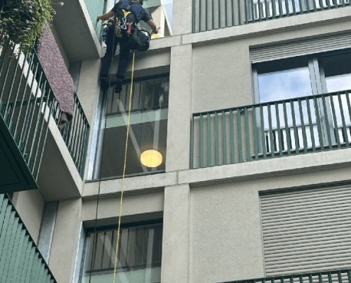 Fensterreinigung nach Bauarbeiten – Industriekletterer im Einsatz gegen Mörtel und Staub